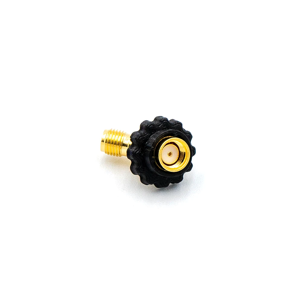 RP-SMA Male to SMA Female 45 degree adapter with thumbscrew collar. A great way to covert DJI goggles for use with SMA antennas. High quality <0.1dB loss @5.8GHz.