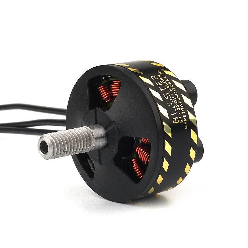 The Hypetrain Blaster is built on a 2207 stator, which provides explosive throttle response on the top end with great control feel, and the copper winding specifications have been tuned to achieve a balanced 2450kv, optimizing efficiency for most 5” propeller choices on the market while increasing throttle resolution.