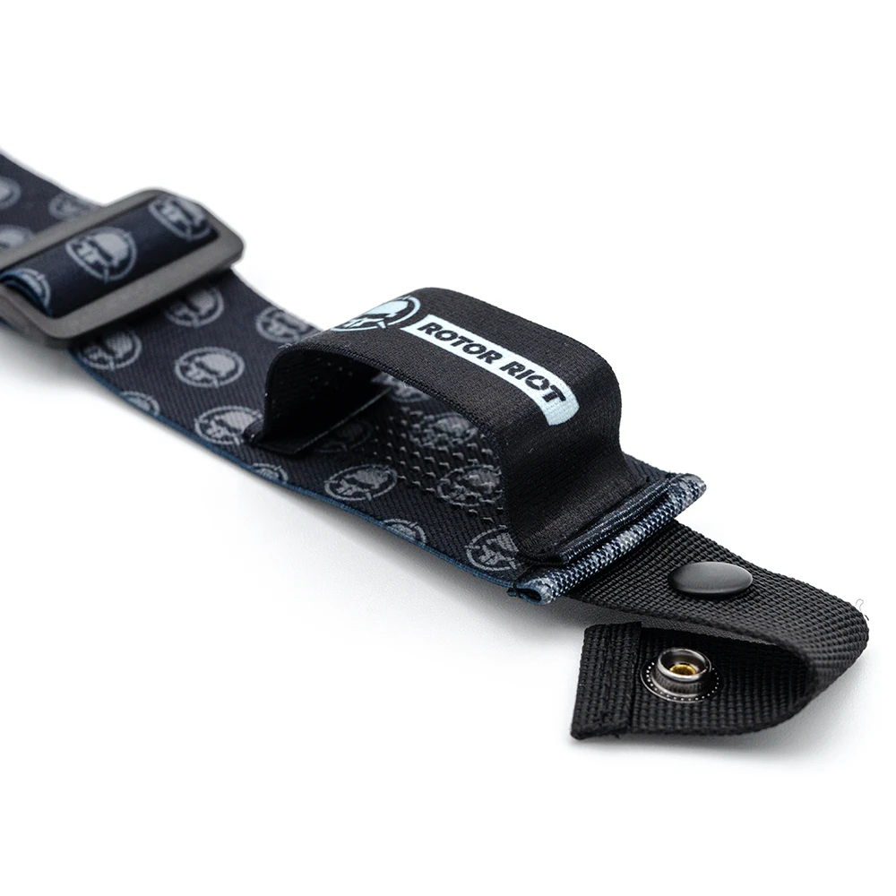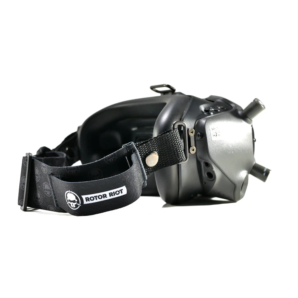 Our new Rotor Riot branded goggle strap is compatible with both DJI and Fat Shark FPV goggles. Featuring wide stretchy material with plenty of size adjustment range, a battery slot lined with anti-slip textured rubber, and slim snaps able to pass through the eyelets of DJI and FatShark goggles.Â