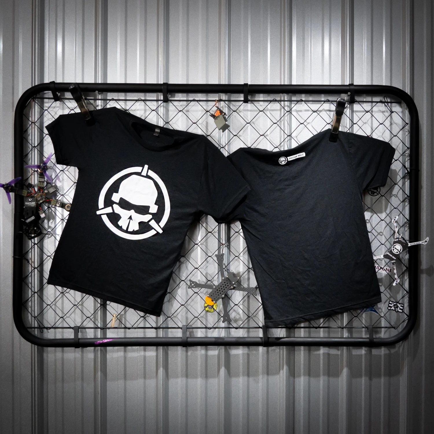 The classic Rotor Riot T shirt. Charcoal black with white skull logo on the front. Small Rotor Riot text on back. Screen printed on soft Next Level shirts.
