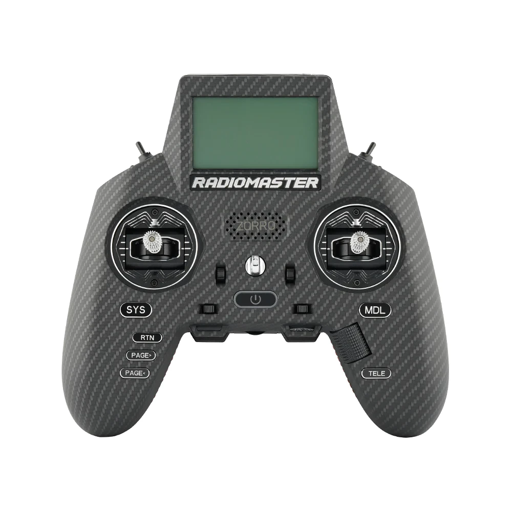 Featuring an ergonomic design, large bright LCD screen in the perfect viewing position, travel adjustable HALL sensor gimbals, a nano size external RF module bay, built-in USB-C Charging, USB-C Data port for updating and playing simulators, rear and top assignable push buttons, scroll wheels, RadioMaster’s 7 button menu navigation system, headphone audio output, external power source input and a host of RF options the RadioMaster Zorro is set to change the game once again.